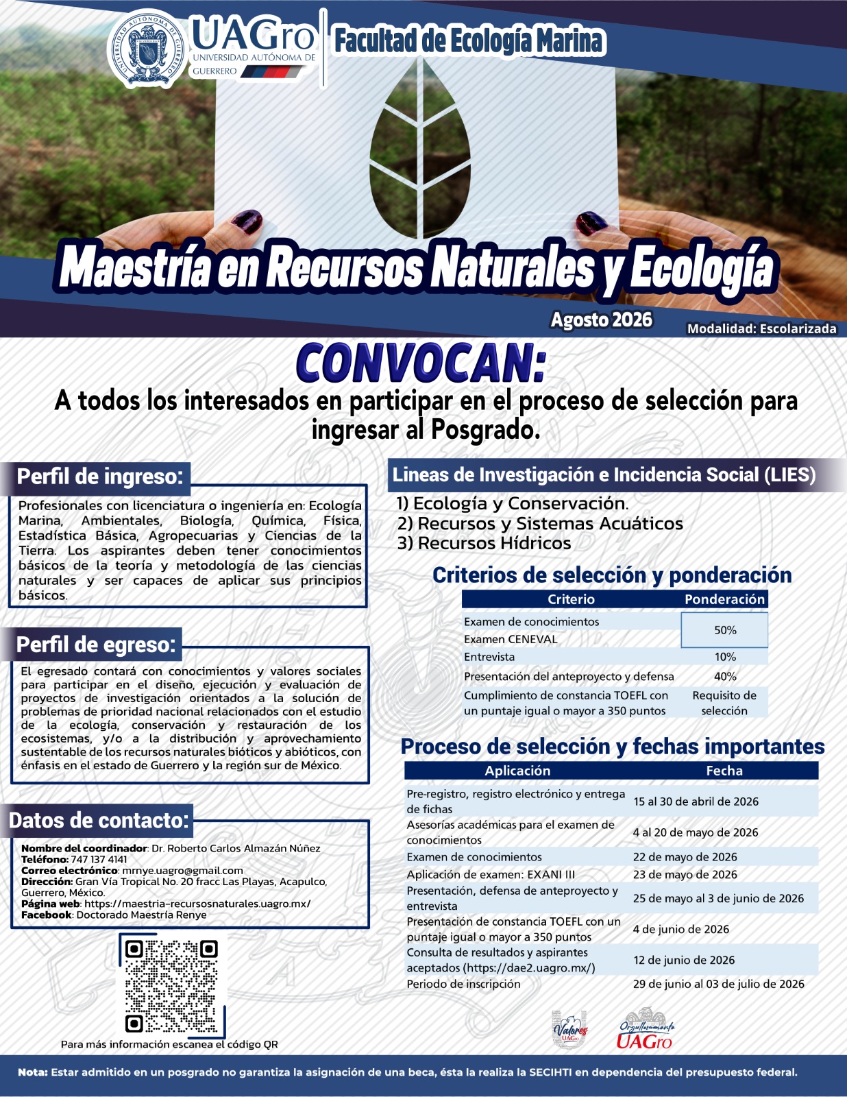 Reciban la más cordial bienvenida al sitio WEB de la Maestría en Recursos Naturales y Ecología (MRNyE) de la Universidad Autónoma de Guerrero.